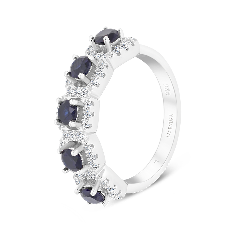 Sterling Silver 925 Ring Rhodium Plated Embedded With Tanzanite