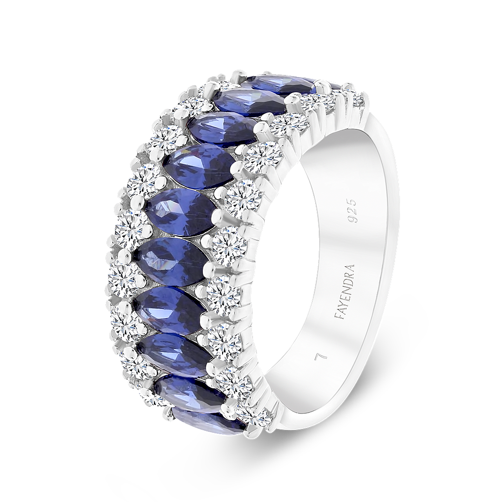 Sterling Silver 925 Ring Rhodium Plated Embedded With Tanzanite