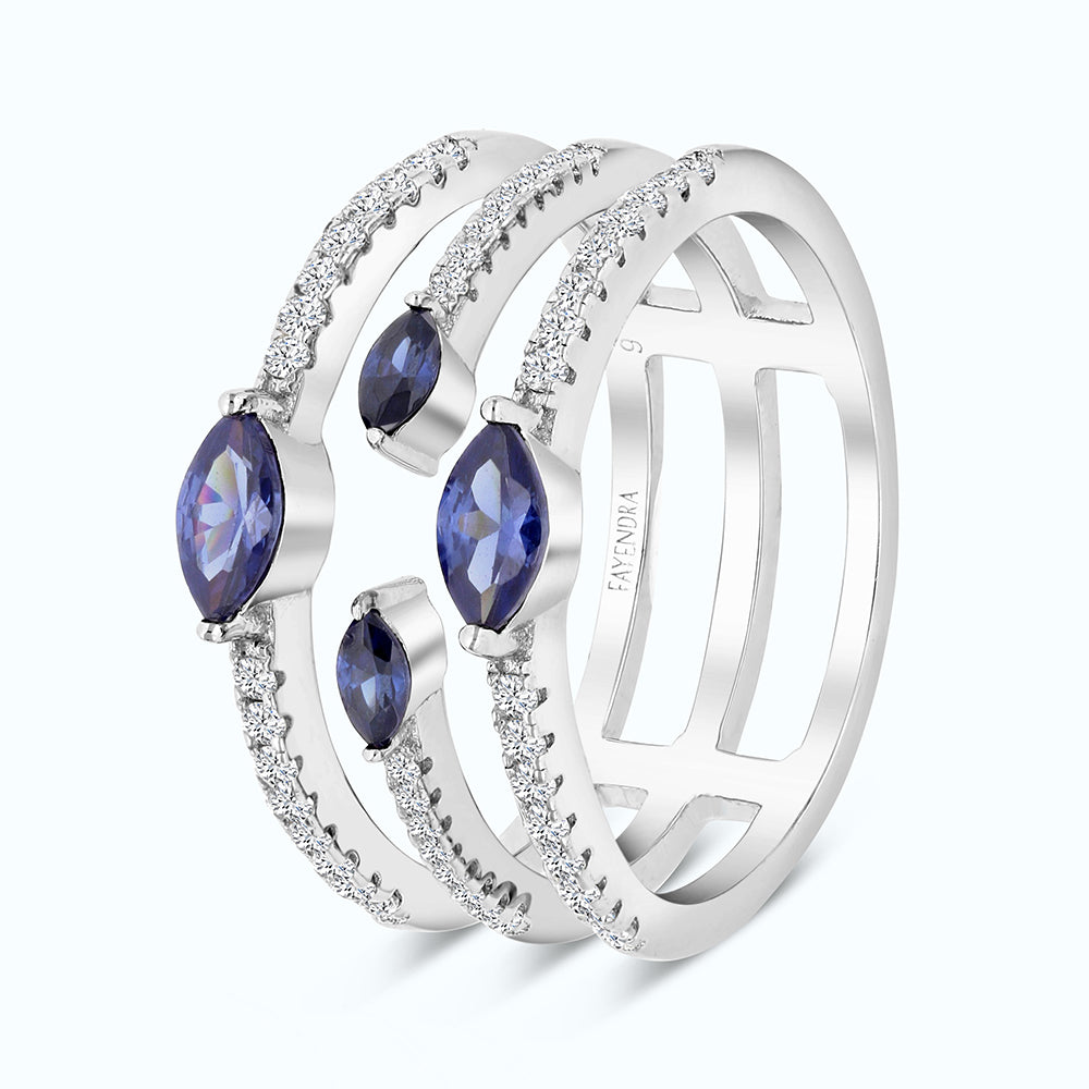 Sterling Silver 925 Ring Rhodium Plated Embedded With Tanzanite
