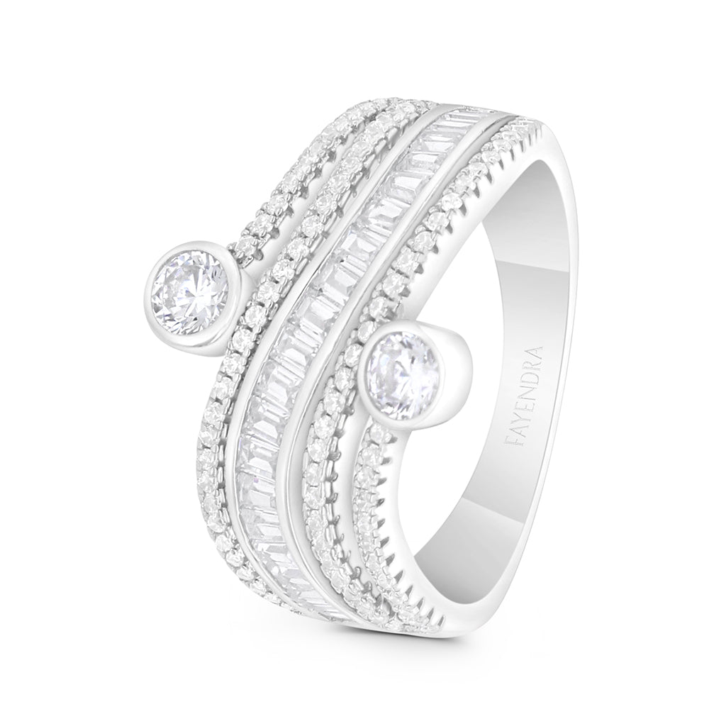 Total weigt: 4.4gEvery detail in this elegant and delicate Fayendra ring is beautiful. The rhodium-plated silver design is adorned with a brilliant assortment of sparkly white zircon stones in diamond cuts. A great way to dress up your everyday look.