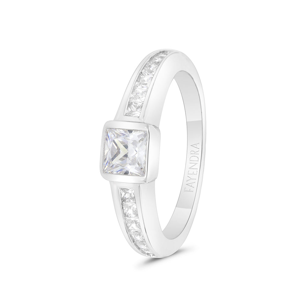 Sterling Silver 925 Ring Rhodium Plated Embedded With White CZ For Men