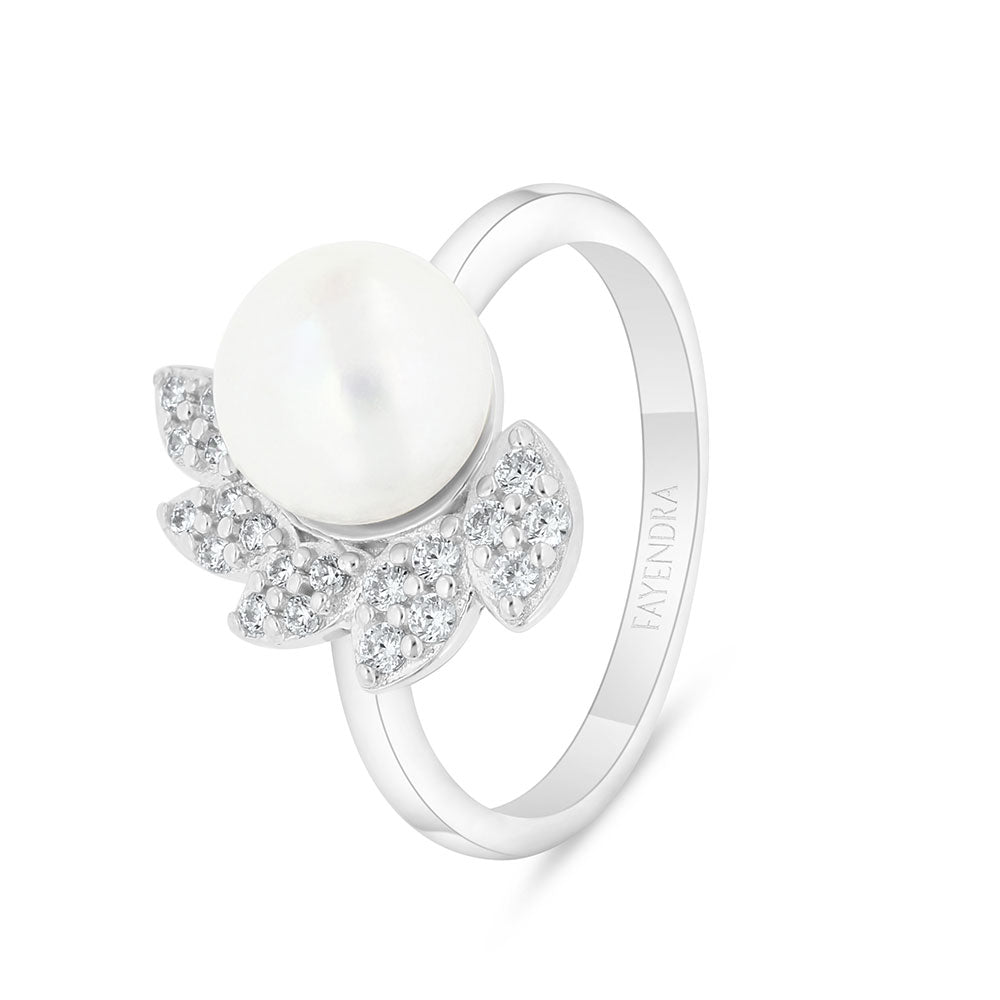 Sterling Silver 925 Ring Rhodium Plated Embedded With White Shell Pearl And White Zircon