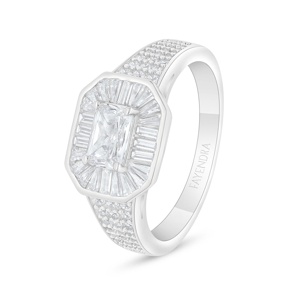 Total Weight :3.6gGive elegance a new meaning by wearing this stunning ring from Fayendra, featuring a multi-layered design made from pure 925 sterling silver, plated with rhodium, and adorned with white zircon stones in varying sizes, cut in brilliant and baguette styles. At its center, sterling silver 925 Ring Rhodium Plated Embedded With a white zircon stone that adds extra sparkle. Wear it and illuminate your fingers with an unmatched shine that’s sure to catch the eye. Add it to your collection now!