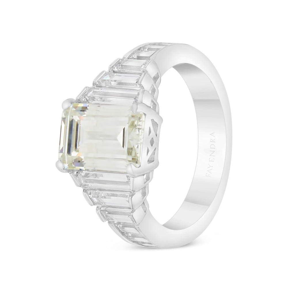 Sterling Silver 925 Ring Rhodium Plated Embedded With Yellow Diamond And White Zircon