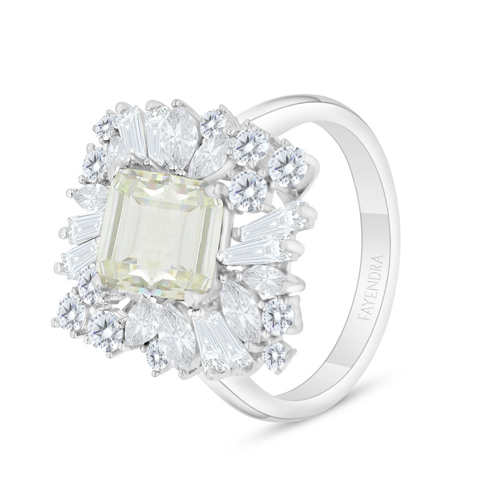 Sterling Silver 925 Ring Rhodium Plated Embedded With Yellow Diamond And White Zircon