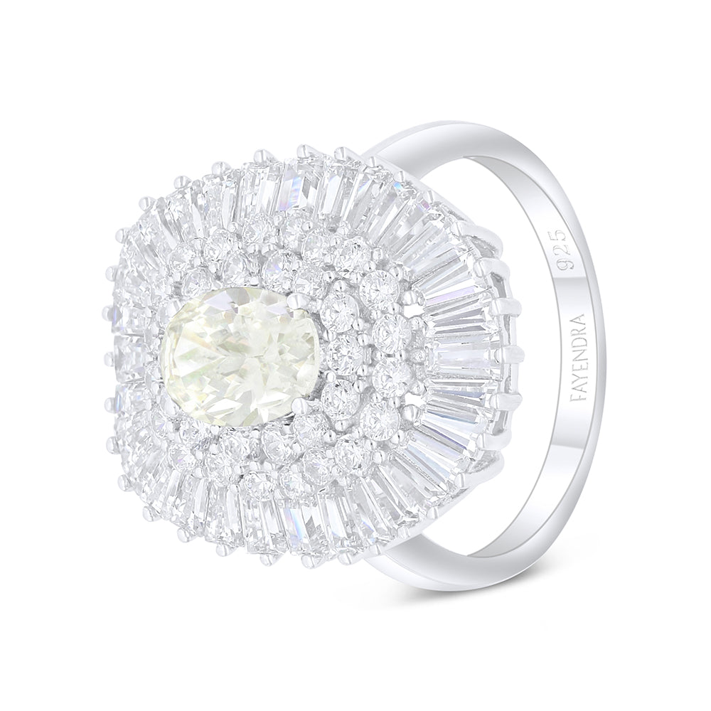 Sterling Silver 925 Ring Rhodium Plated Embedded With Yellow Diamond And White Zircon