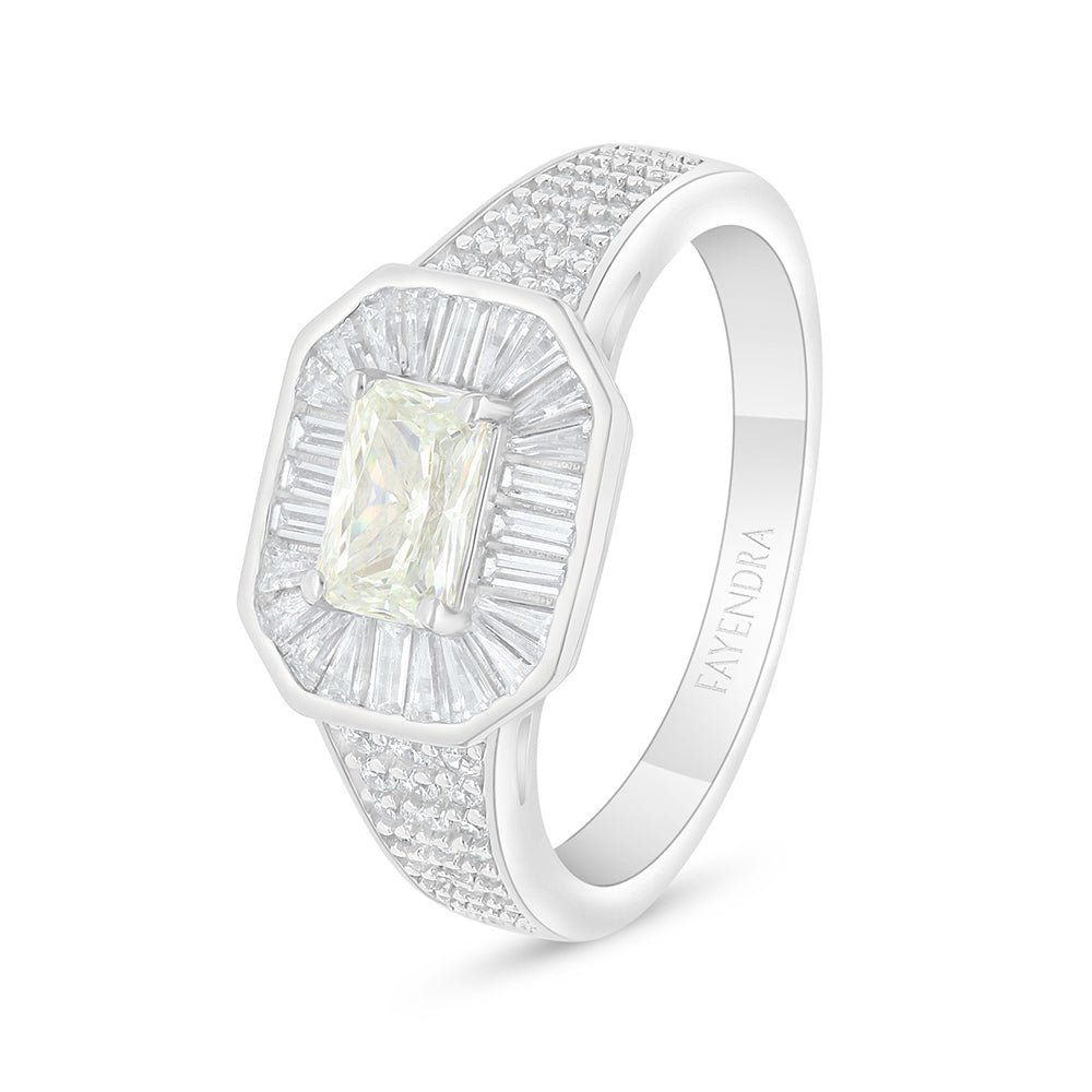 Total Weight :3.6gGive elegance a new meaning by wearing this stunning ring from Fayendra, featuring a multi-layered design made from pure 925 sterling silver, plated with rhodium, and adorned with white zircon stones in varying sizes, cut in brilliant and baguette styles. At its center, a yellow canary zircon stone adds extra sparkle. Wear it and illuminate your fingers with an unmatched shine that’s sure to catch the eye. Add it to your collection now!
