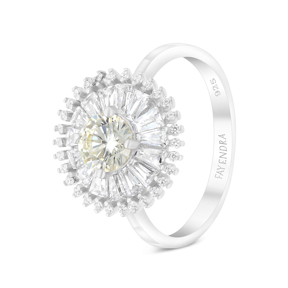 Sterling Silver 925 Ring Rhodium Plated Embedded With Yellow Zircon