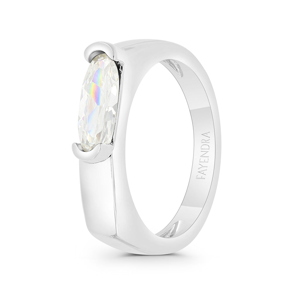 Sterling Silver 925 Ring Rhodium Plated Embedded With Yellow Zircon