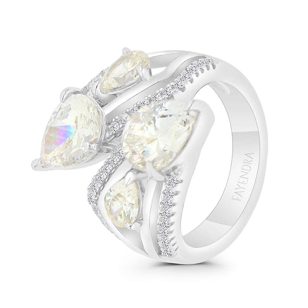 Sterling Silver 925 Ring Rhodium Plated Embedded With Yellow Zircon And White CZ