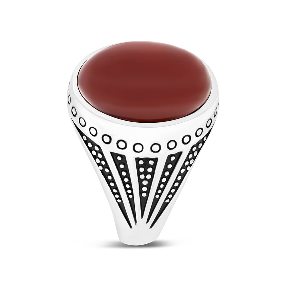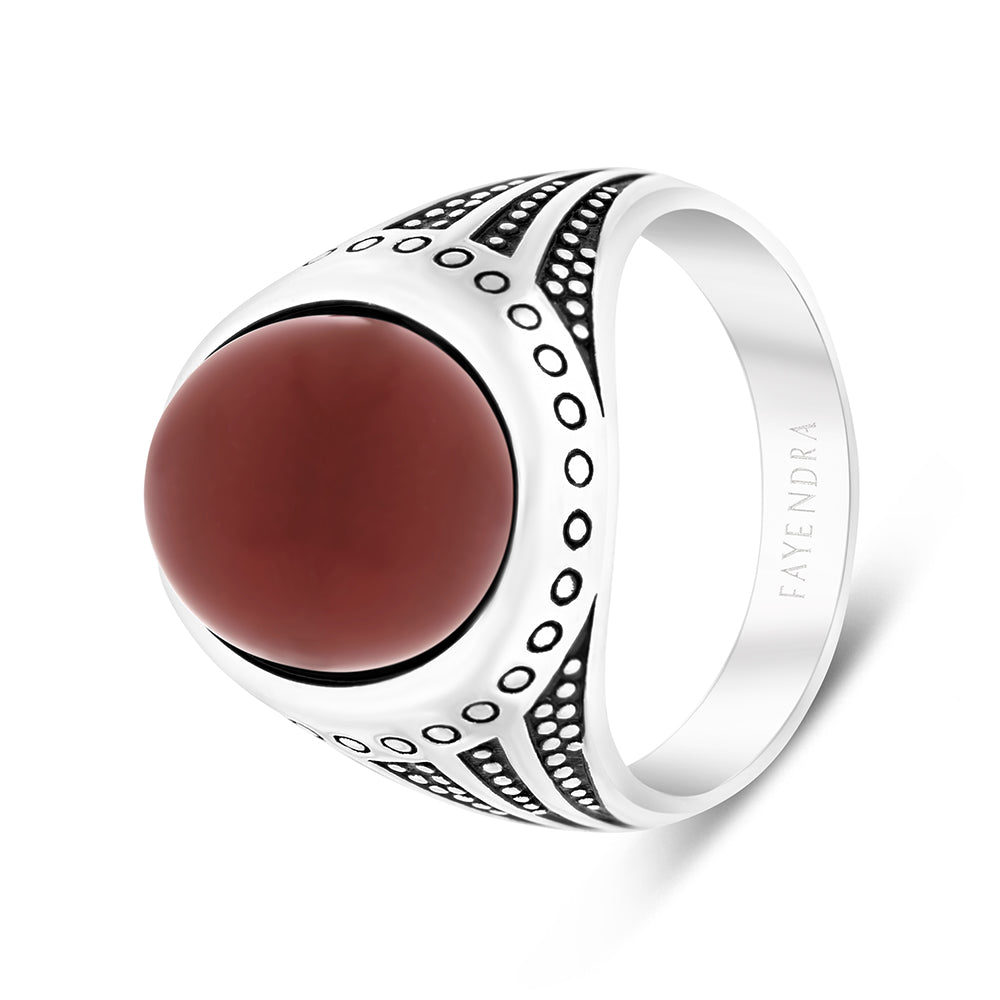 Sterling Silver 925 Ring Rhodium Plated Red Natural Aqiq For Men