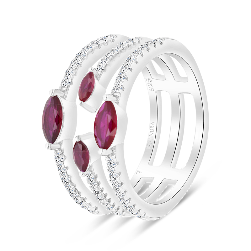 Sterling Silver 925 Ring Rhodium Plated Ruby Corundum