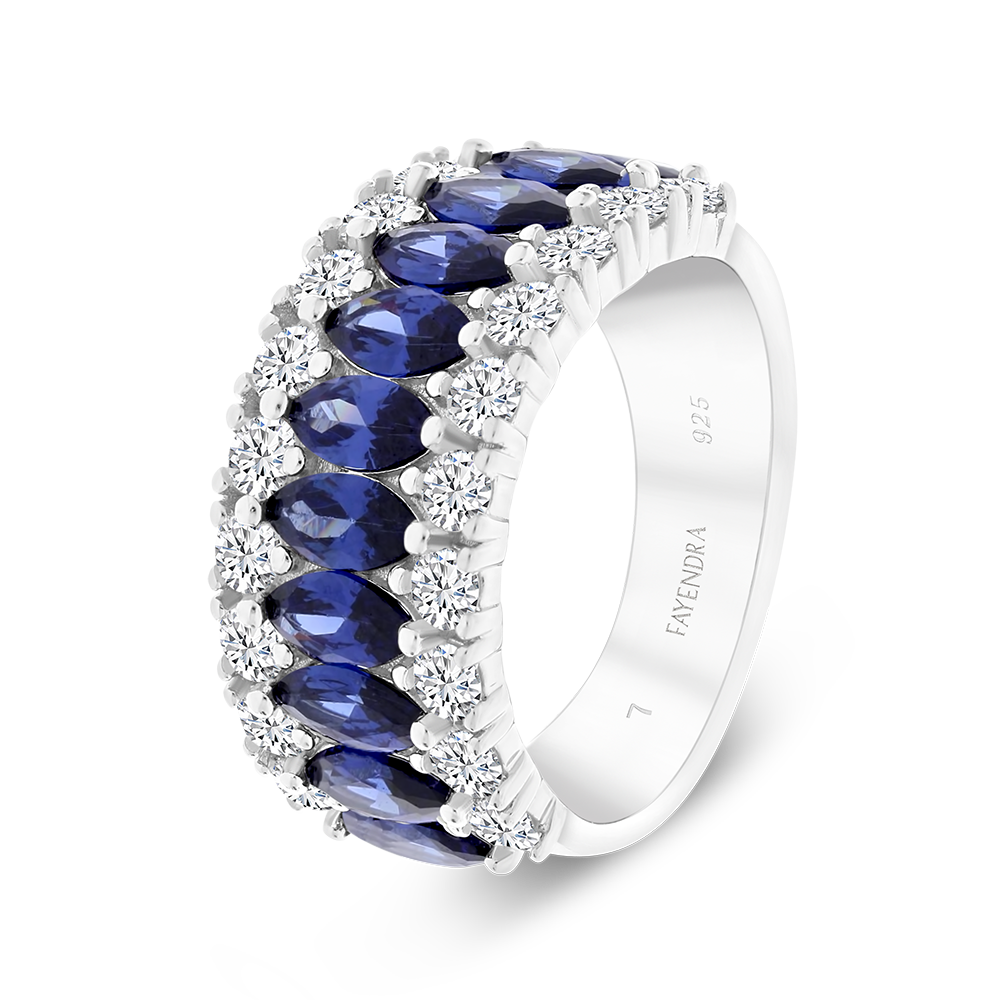 Sterling Silver 925 Ring Rhodium Plated Sapphire Corundum