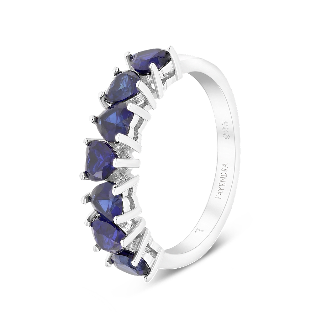 Sterling Silver 925 Ring Rhodium Plated Sapphire Corundum