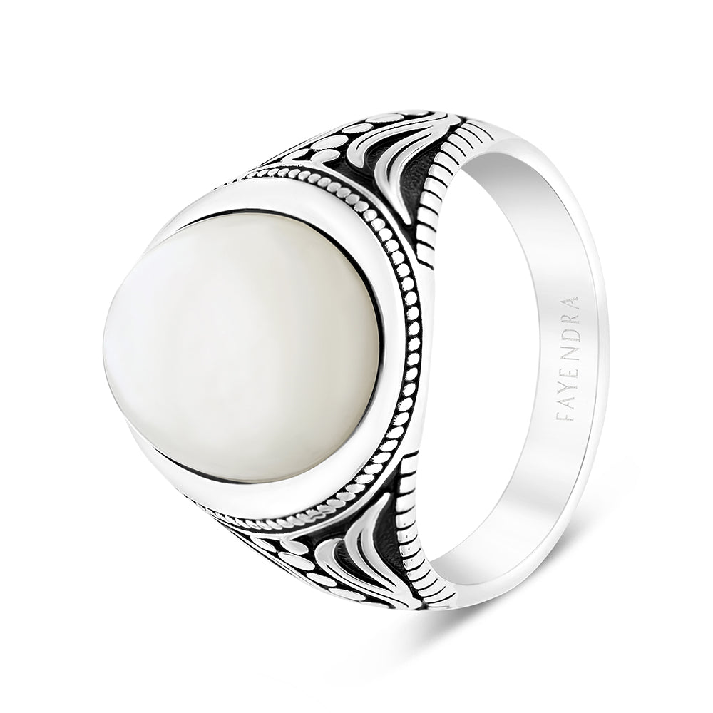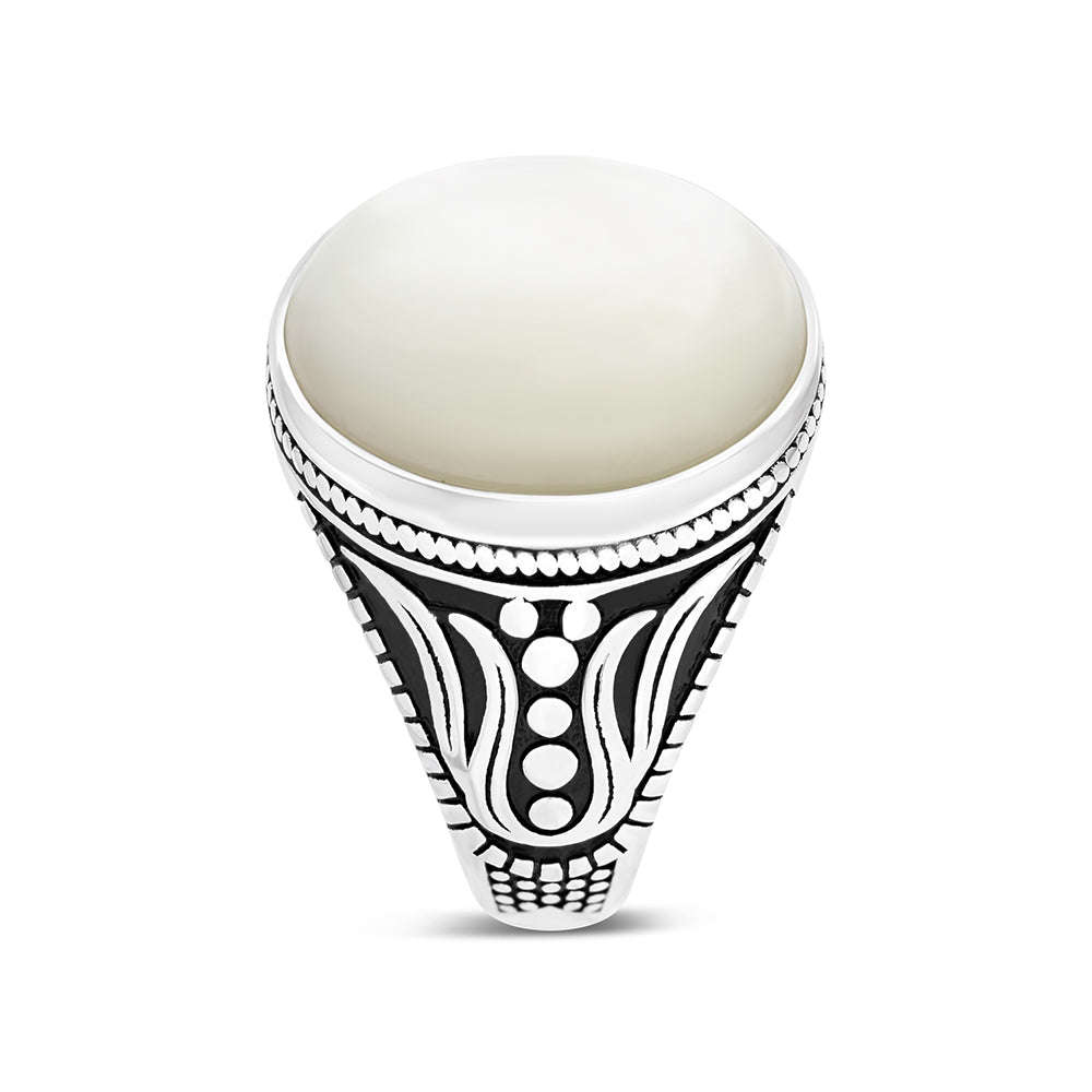 Sterling Silver 925 Ring Rhodium Plated White MOP For Men
