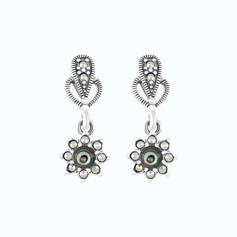 اقراط من الفضة الخالصة عيار 925 مرصعه احجار صدف استرالي طبيعي و ماركسايت