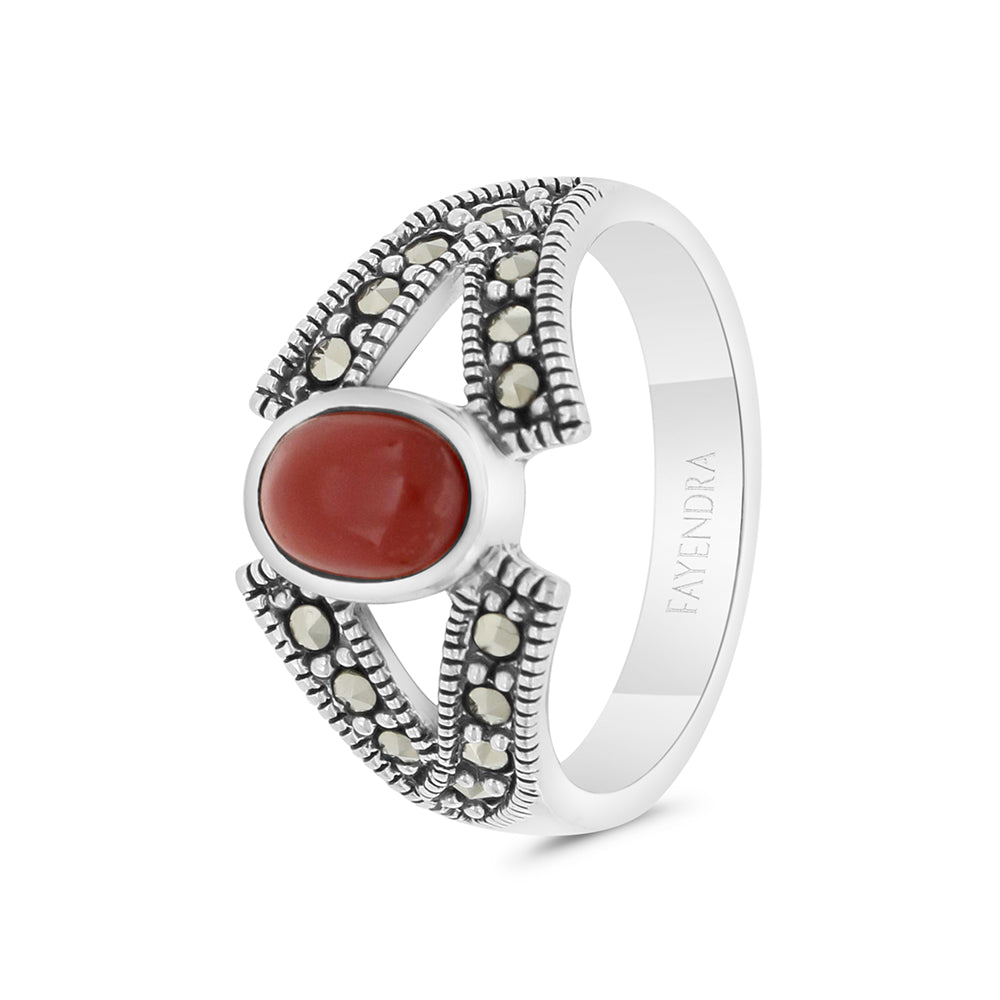 خاتم من الفضة الخالصة عيار 925 مرصع احجار عقيق طبيعي و ماركسايت