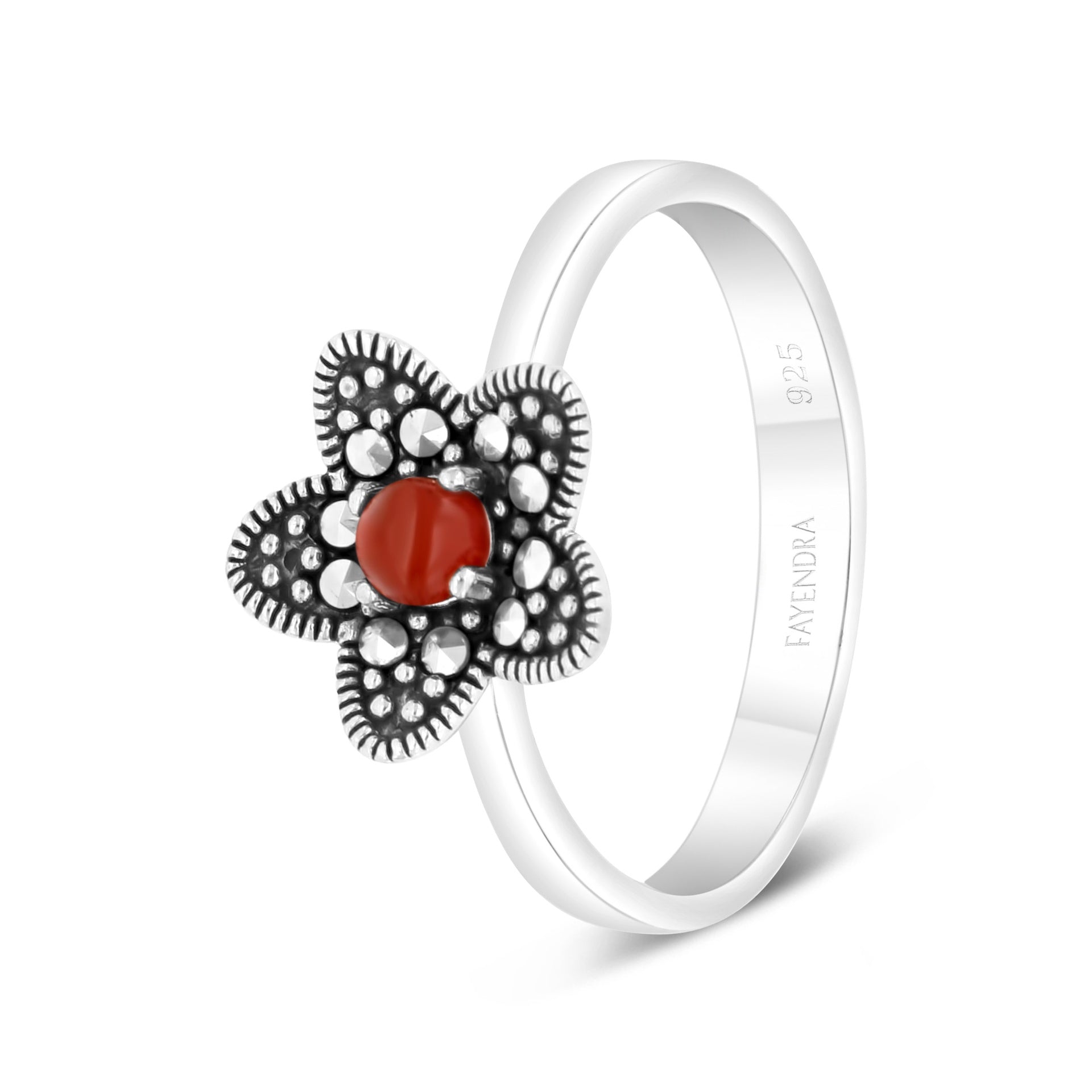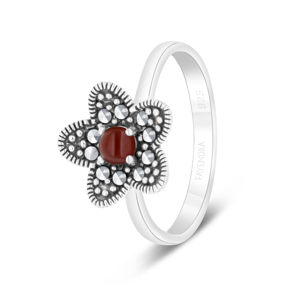 خاتم من الفضة الخالصة عيار 925 مرصع احجار عقيق طبيعي و ماركسايت