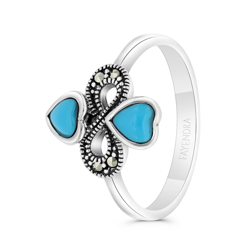 خاتم من الفضة الخالصة عيار 925 مرصع احجار فيروز معالج و ماركسايت