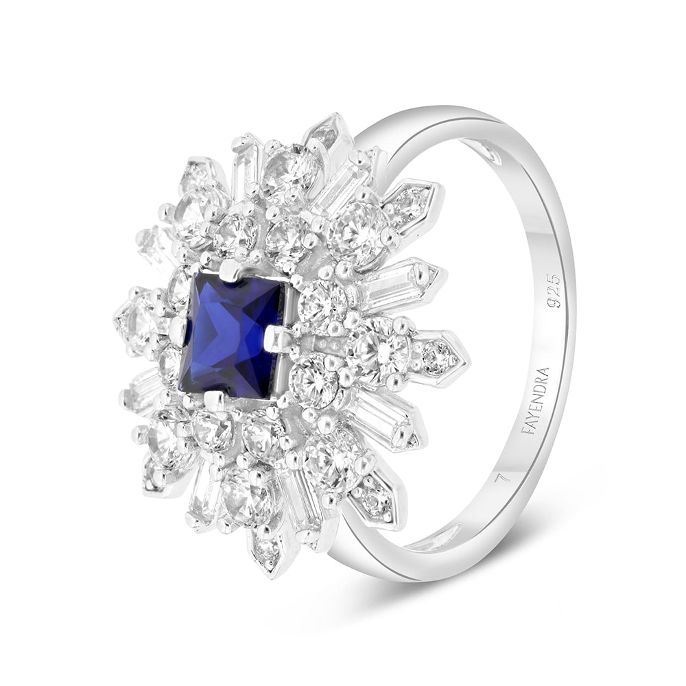 خاتم من الفضة الخالصة عيار 925 مطلي روديوم مرصع زفير كروندوم و فص ابيض