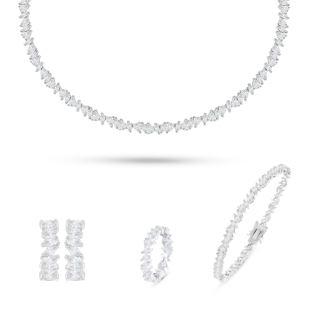 طقم فضة عيار 925 مطلي روديوم مرصع فص ابيض