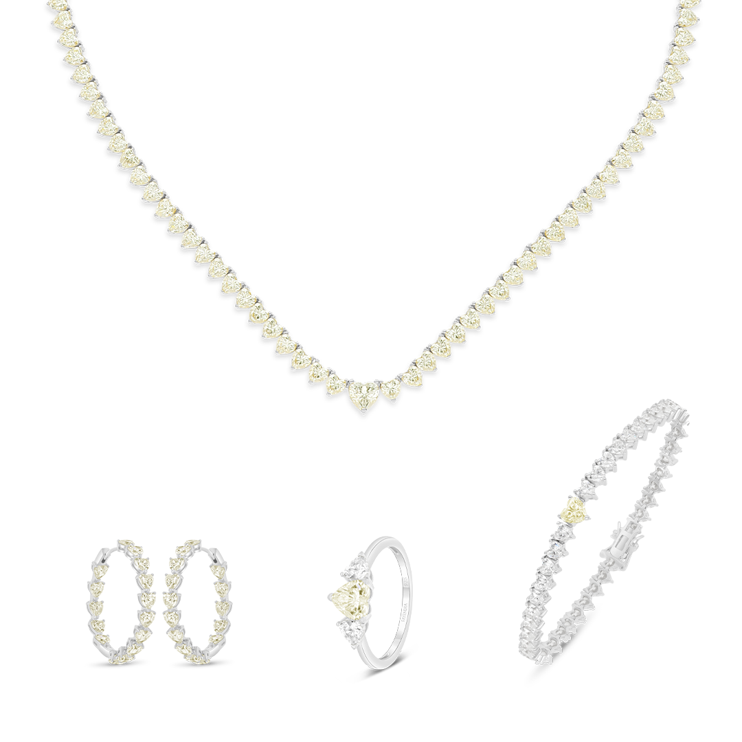 طقم فضة عيار 925 مطلي روديوم مرصع زركون الكناري الالماسي و فص ابيض