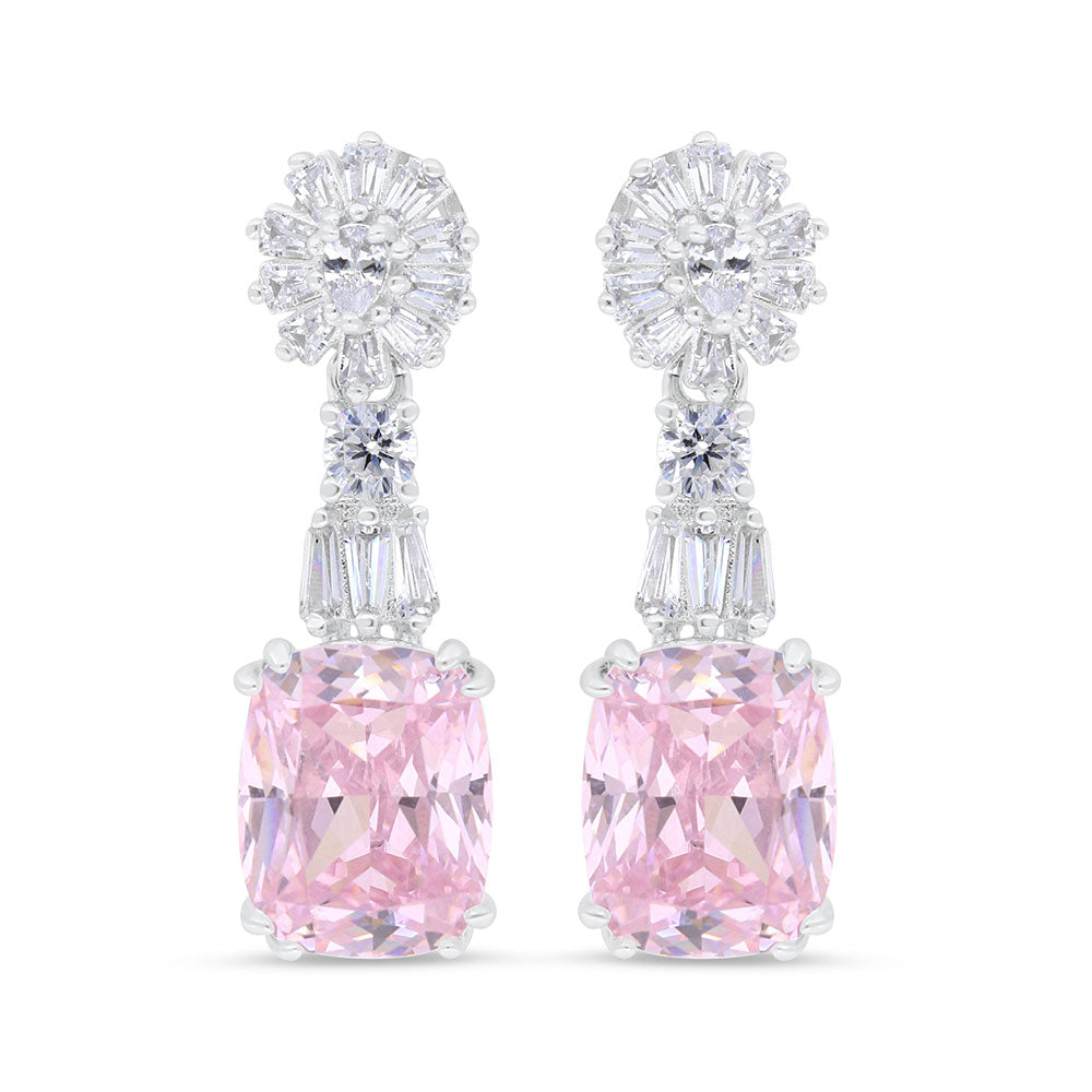طقم من الفضة الخالصة عيار 925 مطلي روديوم مرصع زركون بنك و فص ابيض