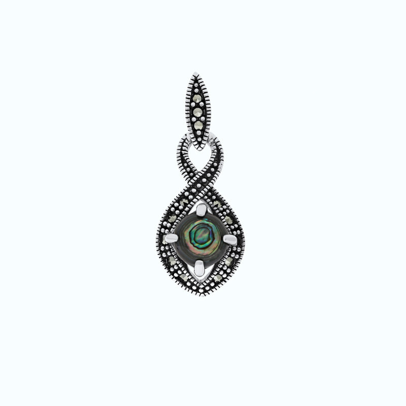 قلادة من الفضة الخالصة عيار 925 مرصعة احجار صدف استرالي طبيعي و ماركسايت