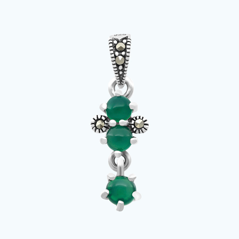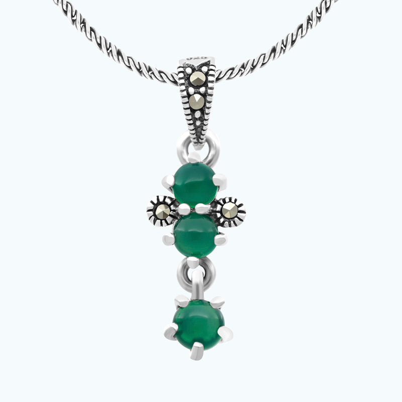 قلاده من الفضة الخالصة عيار 925 عقيق جاد اخضر طبيعي و ماركسايت