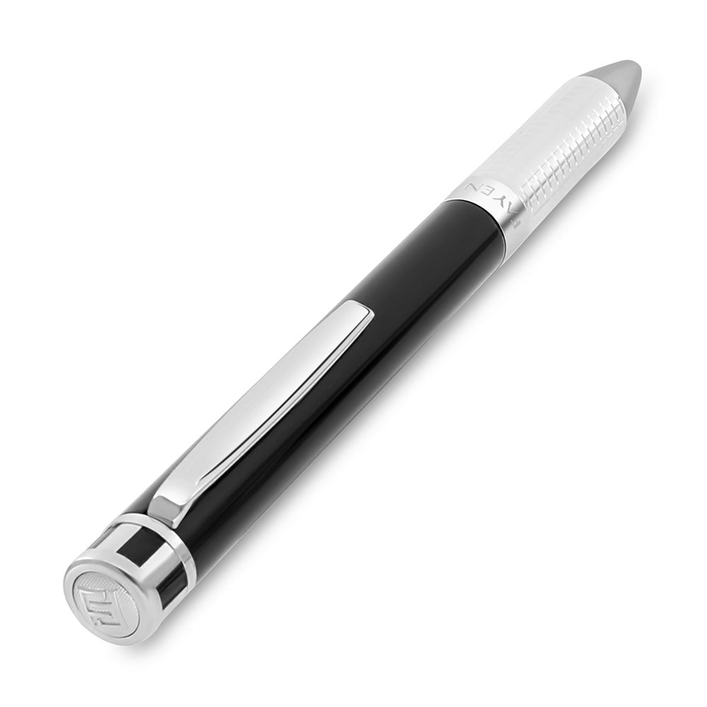 قلم فايندرا الفاخر الجزء العلوي ذو تصميم خاص مطلي فضي واسود و الجزء السفلي مطلي فضي مع نقش مربعات صغيرة