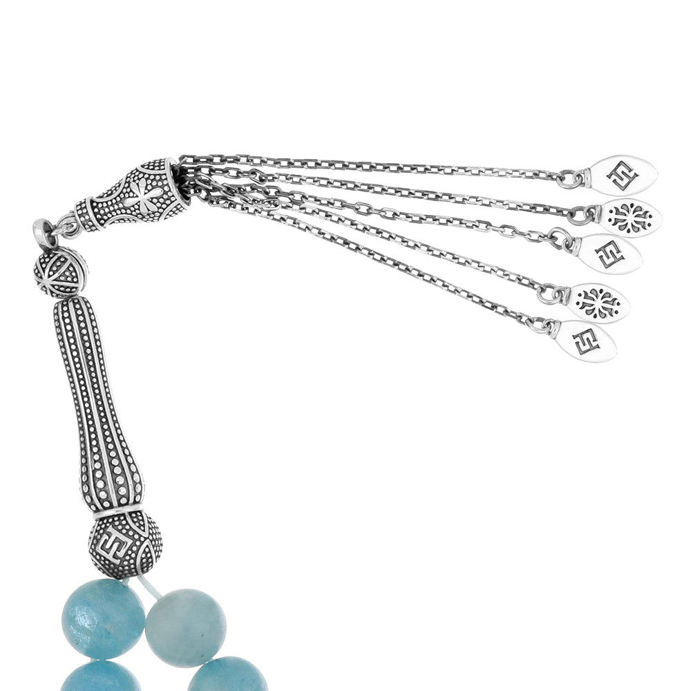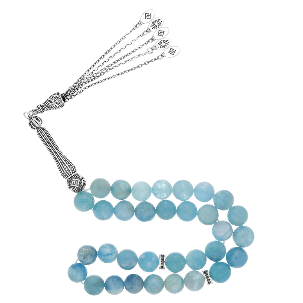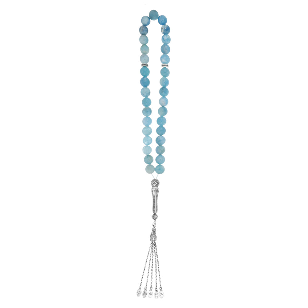 سبحة 33 اكوامارين طبيعي بيلية 10 مل طقم فضة عيار 925 مؤكسد