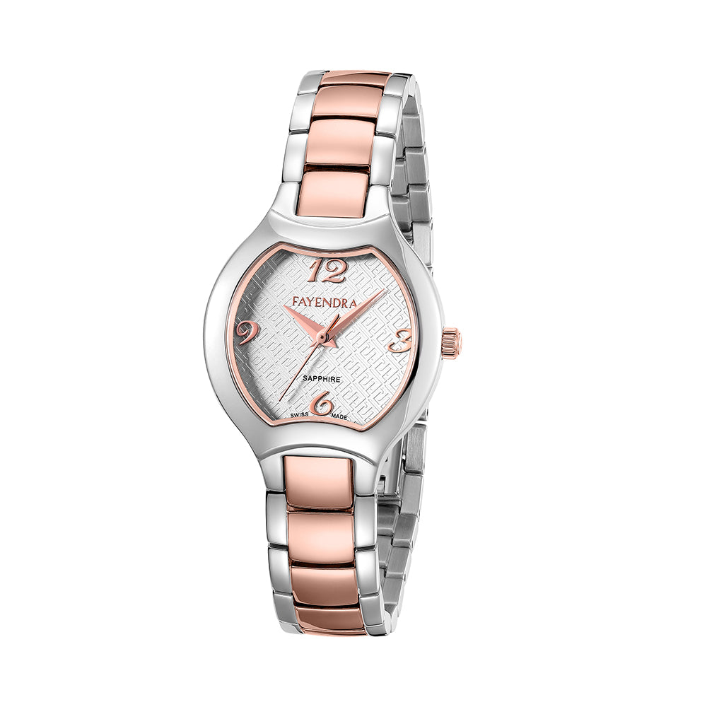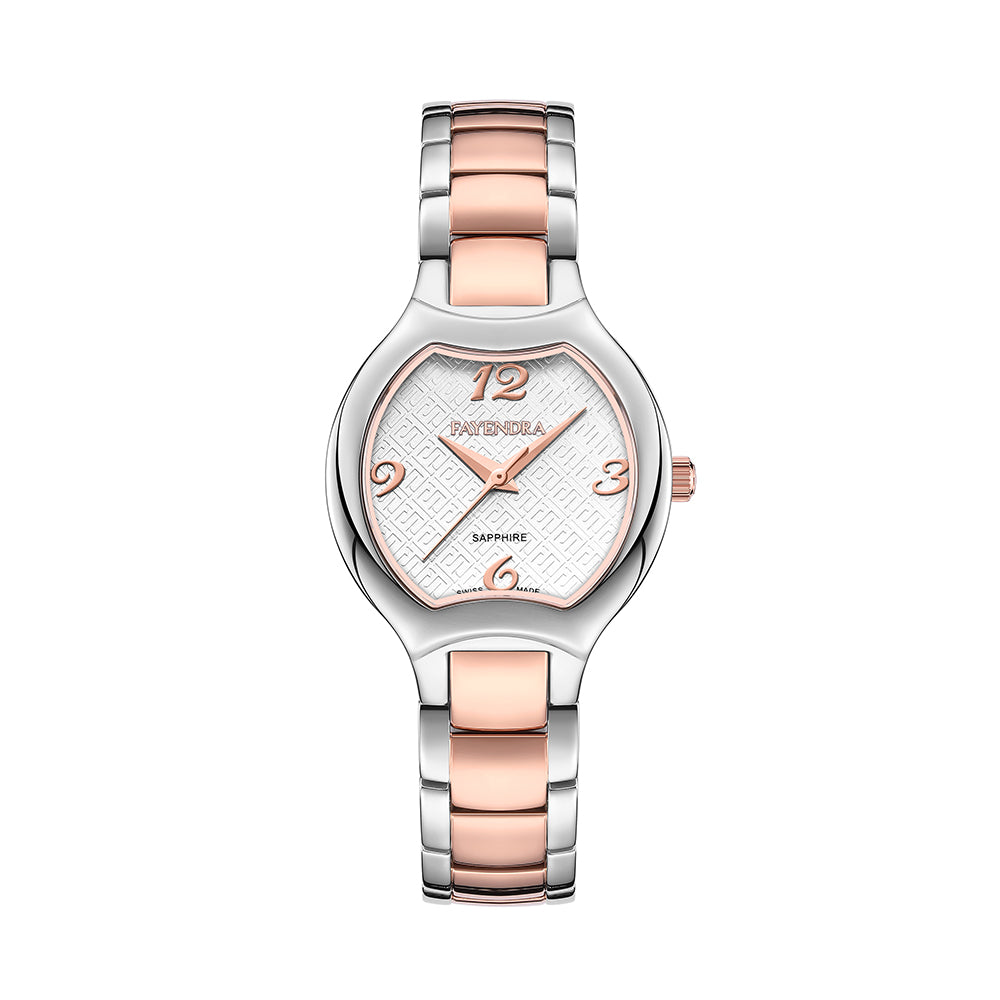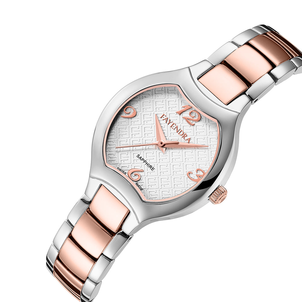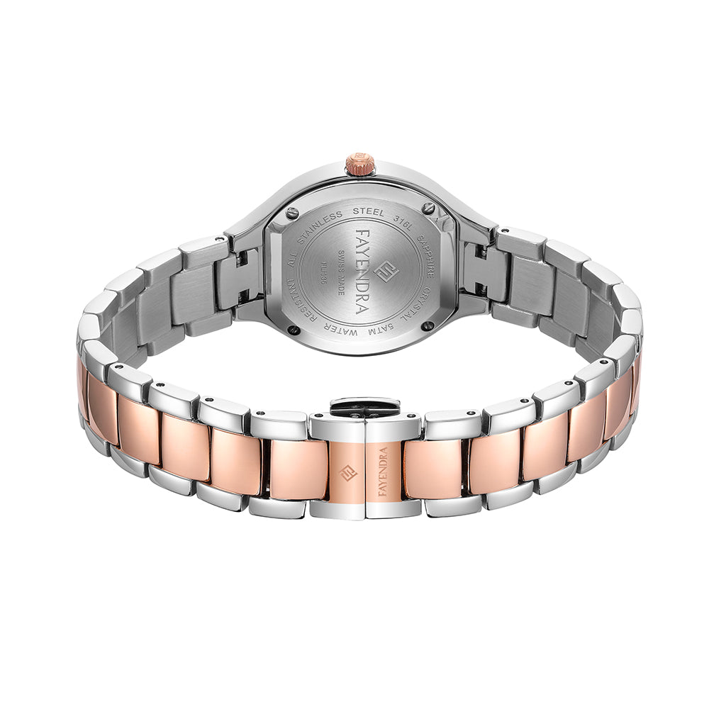 ساعة ستانلس ستيل عيار 316 بلون فضي و ذهبي روز - مينا معدنية باللون الابيض