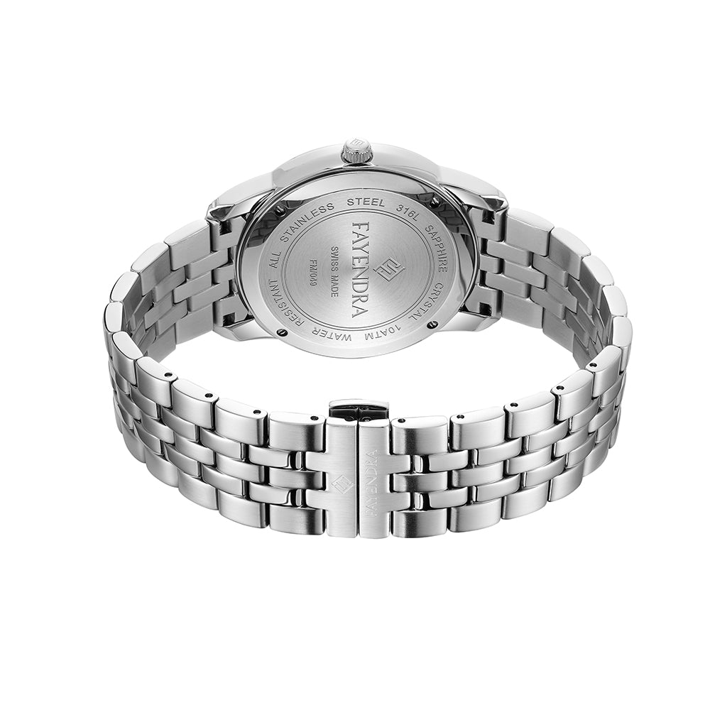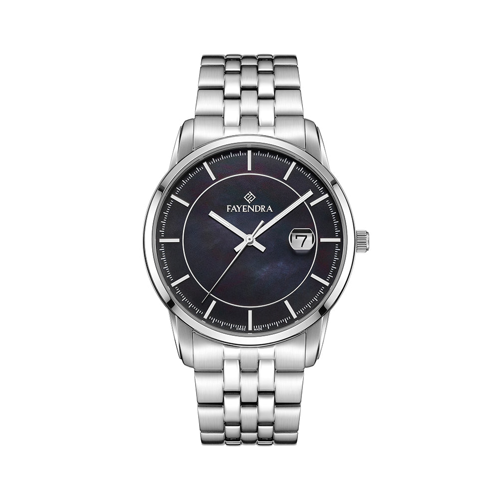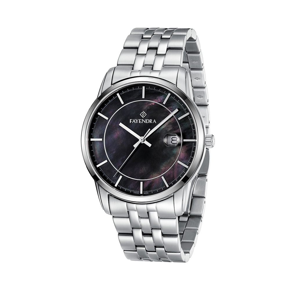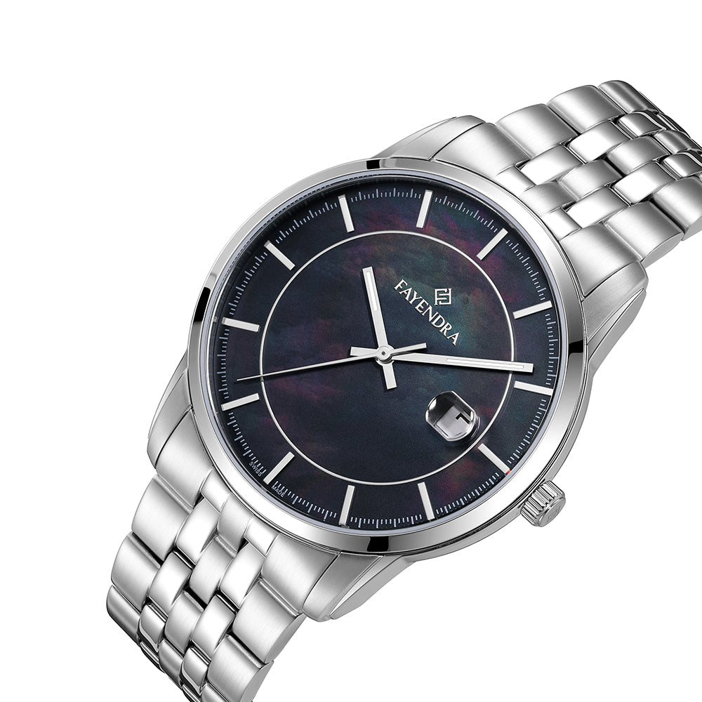 ساعة رجالي ستانلس ستيل عيار 316 بلون فضي - مينا حجر صدف ام اللالئ الاسود