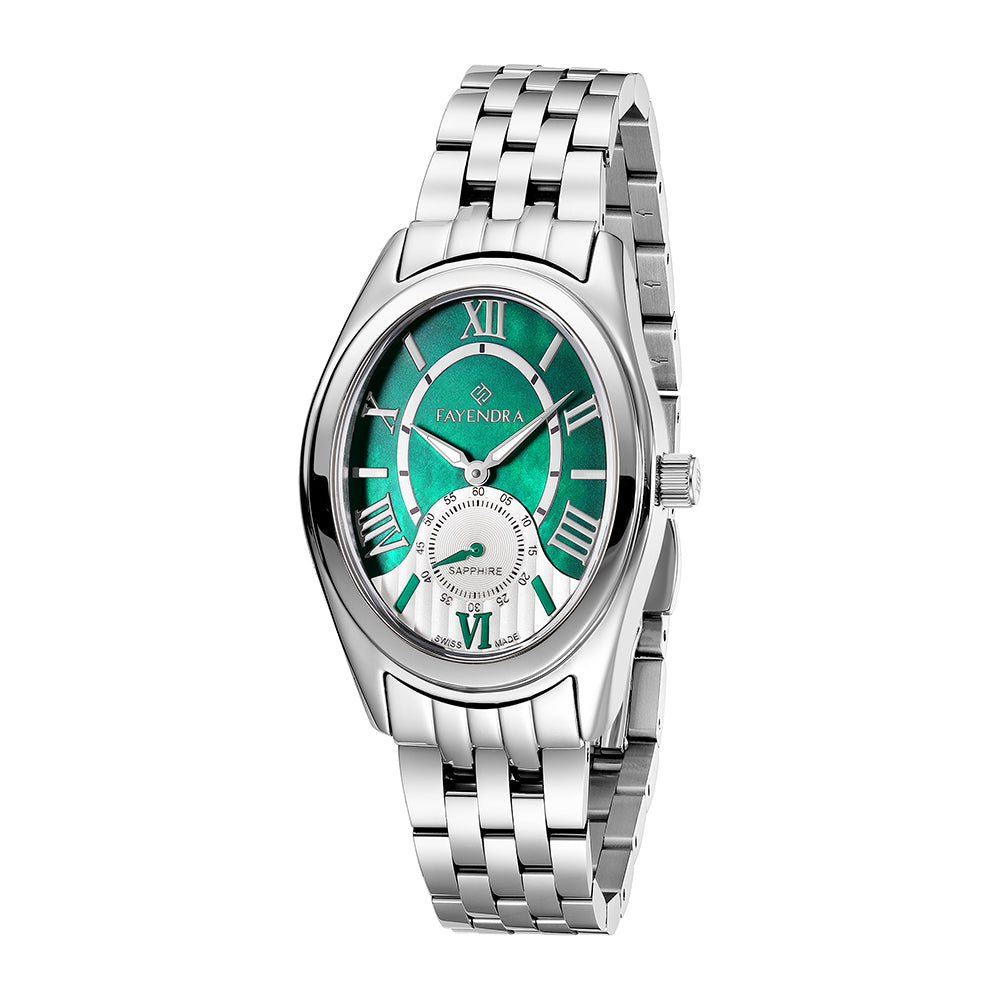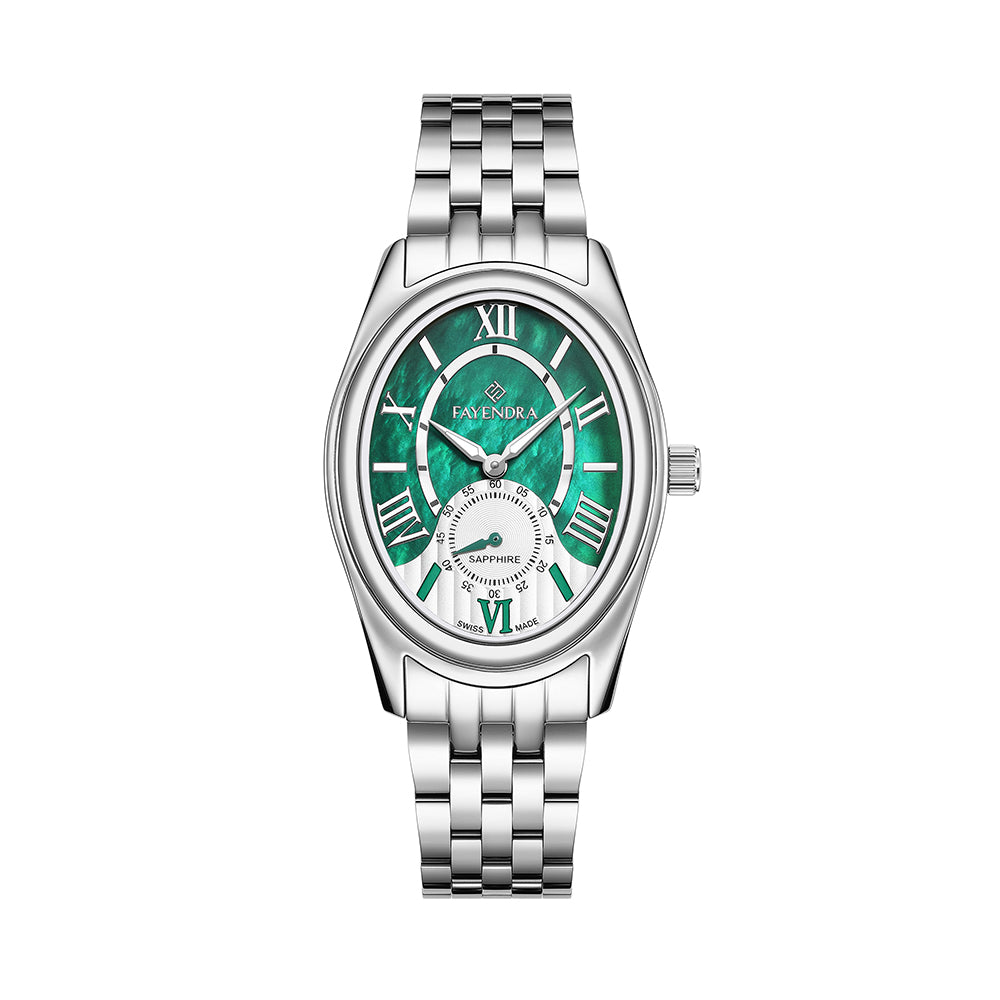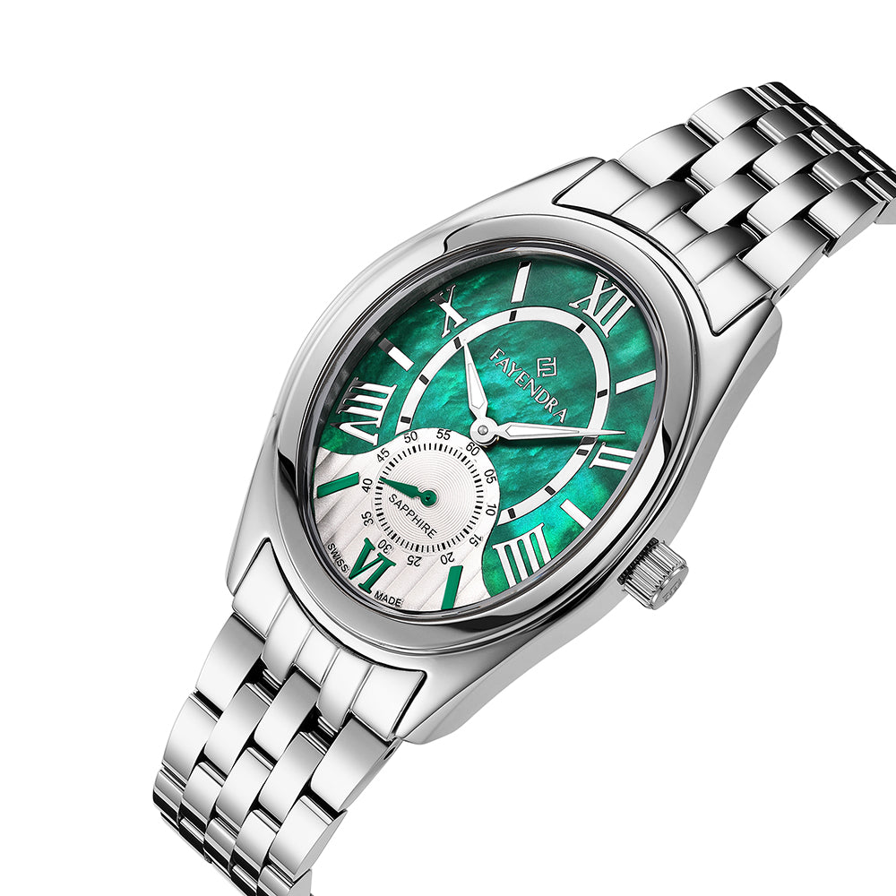 ساعة ستانلس ستيل عيار 316 بلون فضي - مينا حجر صدف ام اللالئ الاخضر