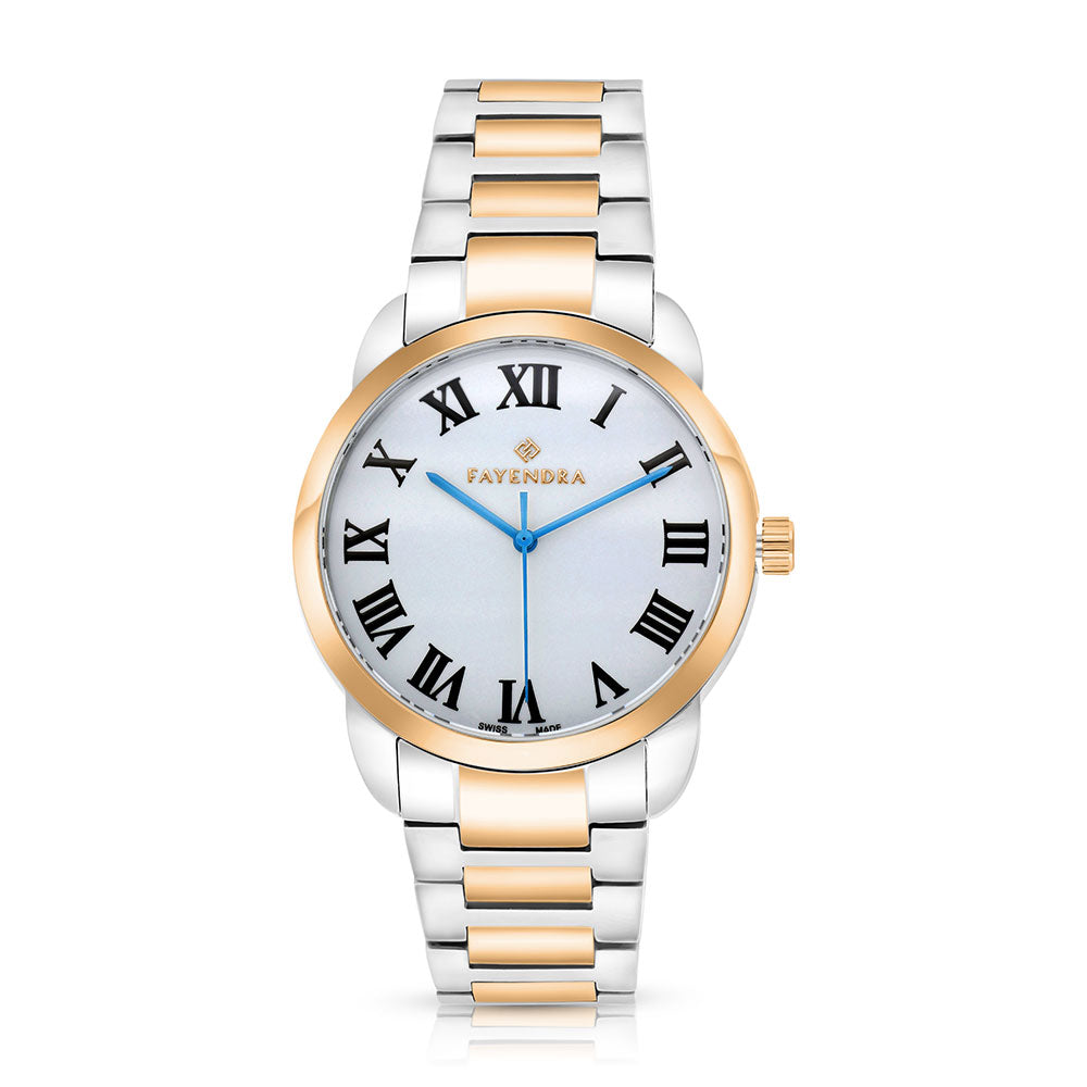 ساعة رجالي ستانلس ستيل عيار 316 بلون الستيل والذهبي روز ارقام سوداء SILVER DIAL