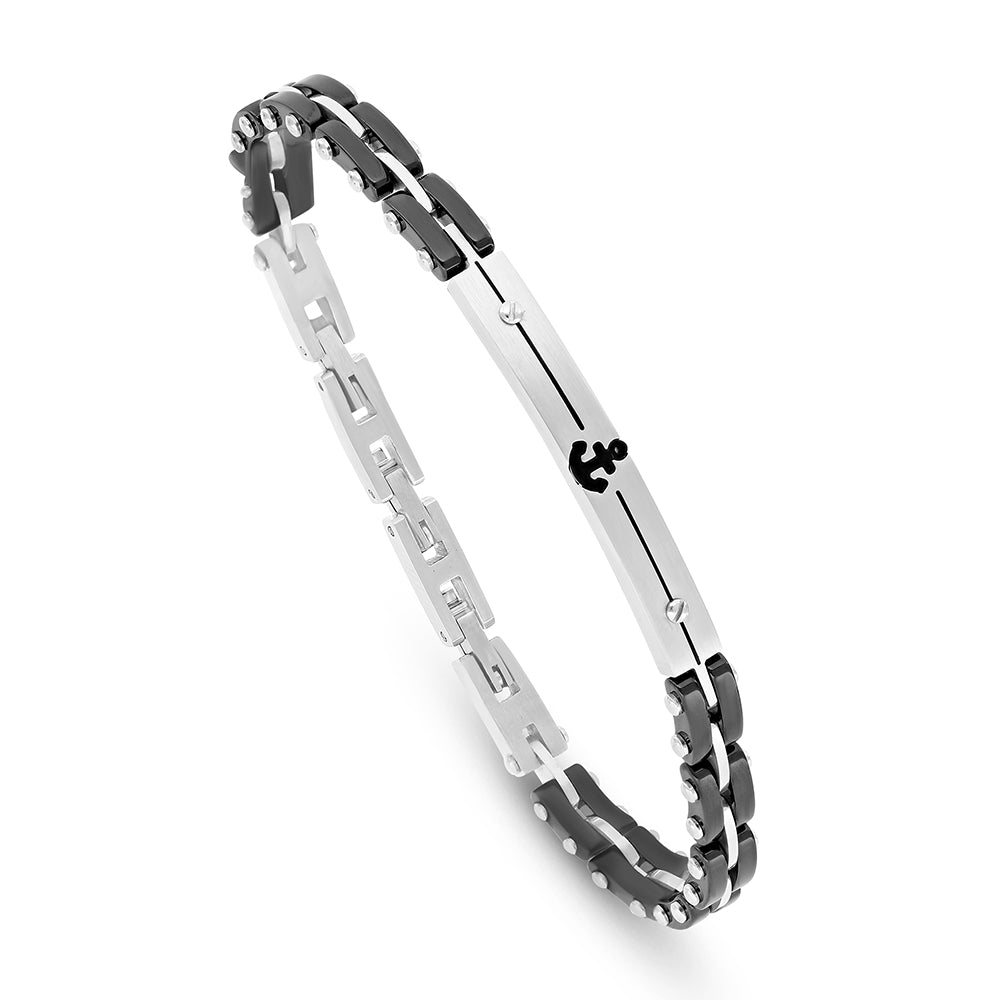316L اسورة رجالي ستانلس ستيل لون فضي و اسود و سيراميك عيار