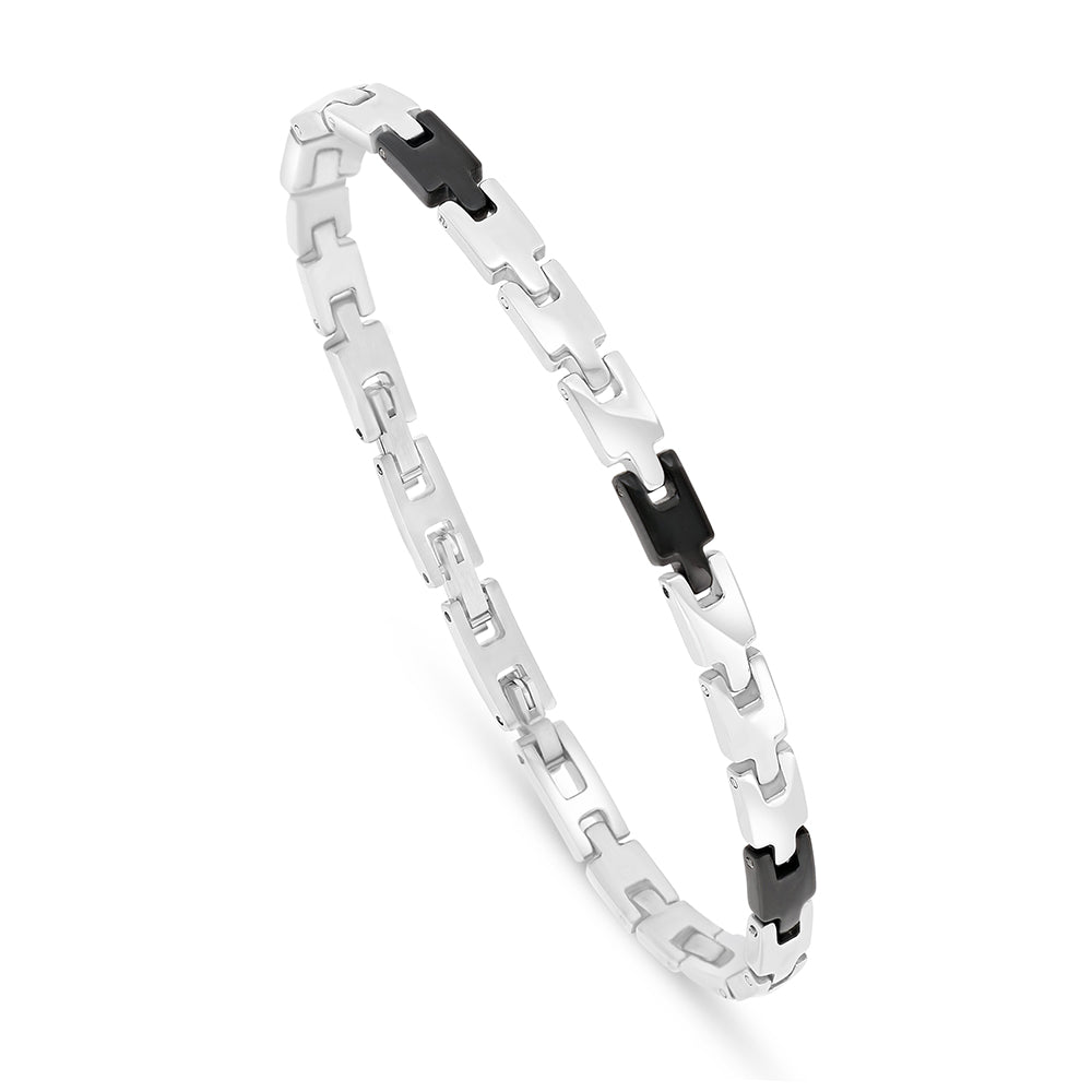 اسورة رجالي ستانلس ستيل لون فضي و اسود عيار 316L