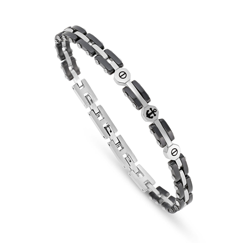 316L اسورة رجالي ستانلس ستيل لون فضي و سيراميك عيار
