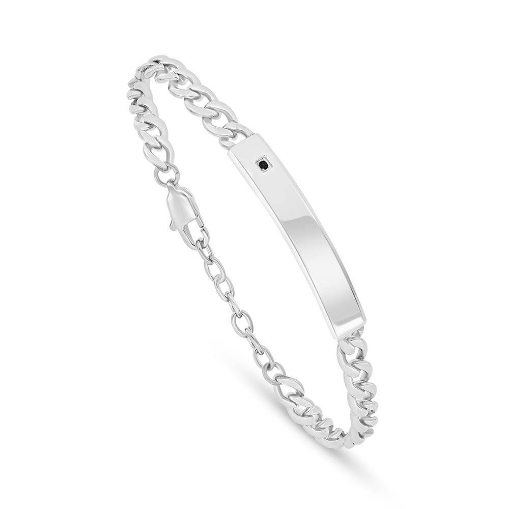 اسورة رجالي ستانلس ستيل لون فضي و فص ابيض عيار 316L