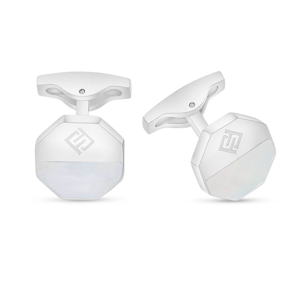 عبّر عن ذوقك الرفيع واجعل منه بصمتك الخاصة مع هذا الكبك المميز من فايندرا، المصنوع من ستانلس ستيل فاخر عيار 316L. يتميز بتصميم سداسي لامع مقسوم من المنتصف، حيث يزين أحد جانبيه حجر صدف أم اللألئ الأبيض المعروف بلمعانه ونقاءه، بينما يتوسط الجانب الآخر شعار فايندرا الأنيق. تصميم يجمع بين الجرأة والجاذبية في إطلالة واحدة متفردة. تسوّق الآن!