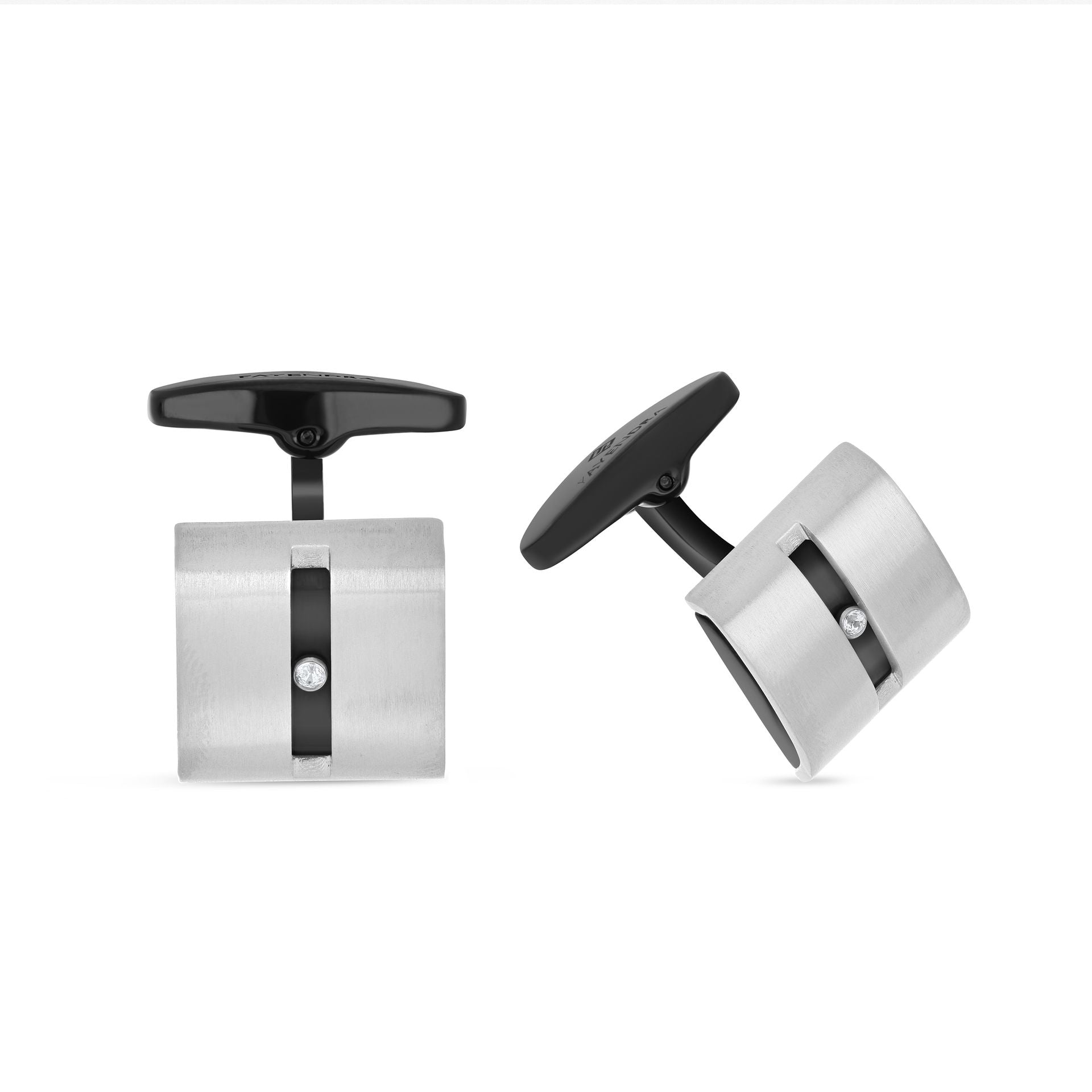 كبك ستانلس ستيل لون فضي و اسود و فص ابيض عيار L316