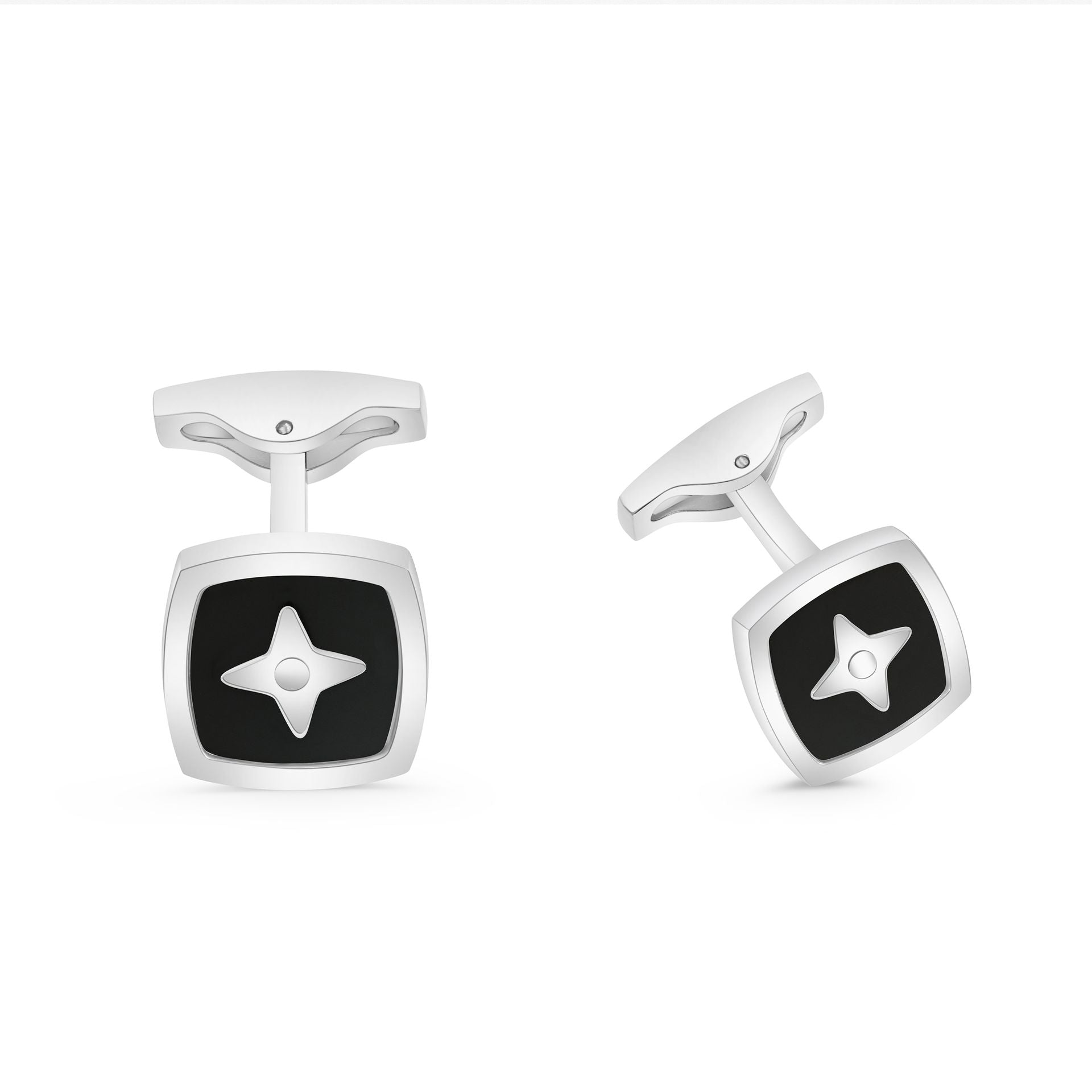 كبك ستانلس ستيل لون فضي و احجار عقيق اسود طبيعي عيار L316