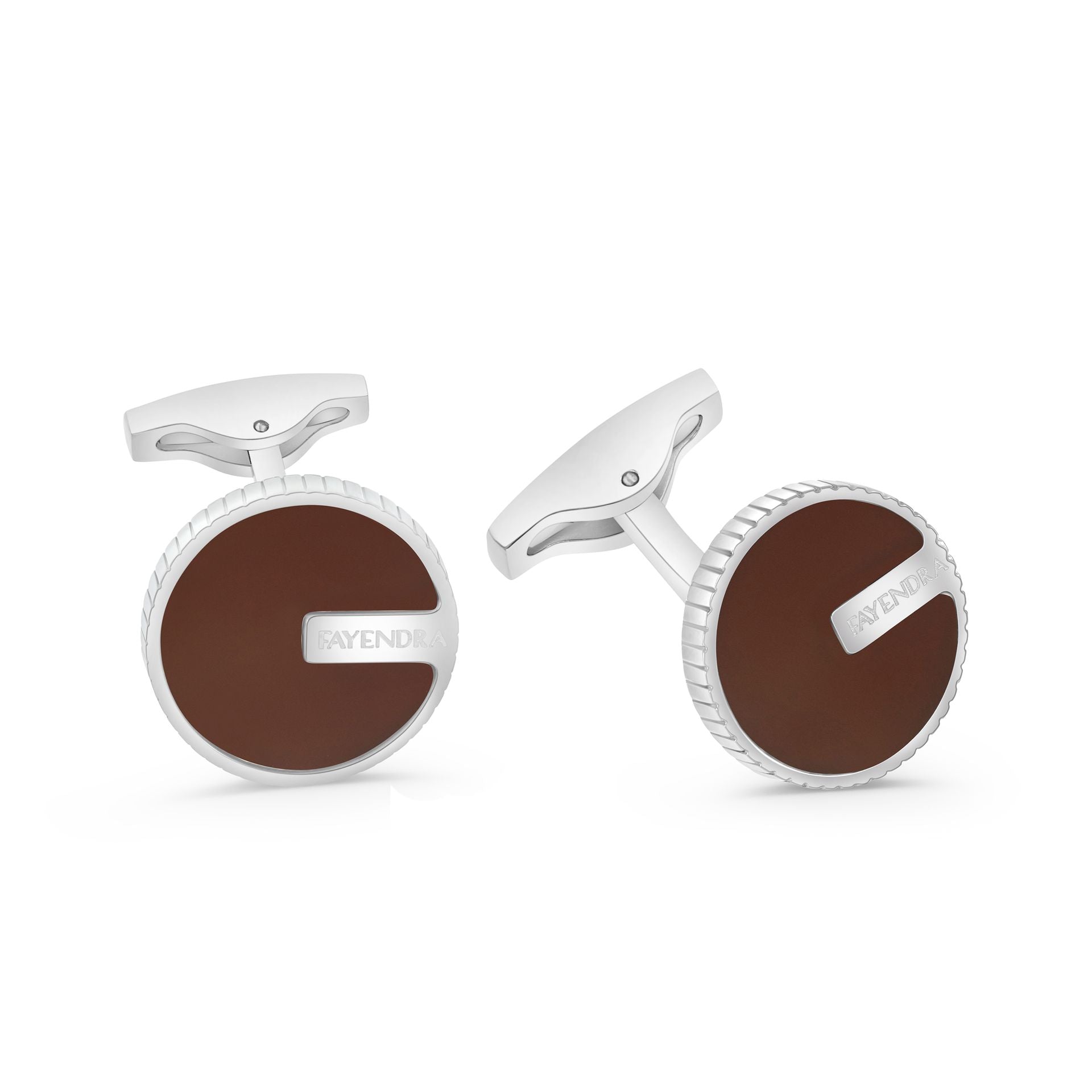 كبك ستانلس ستيل لون فضي و احجار عقيق بني طبيعي عيار L316
