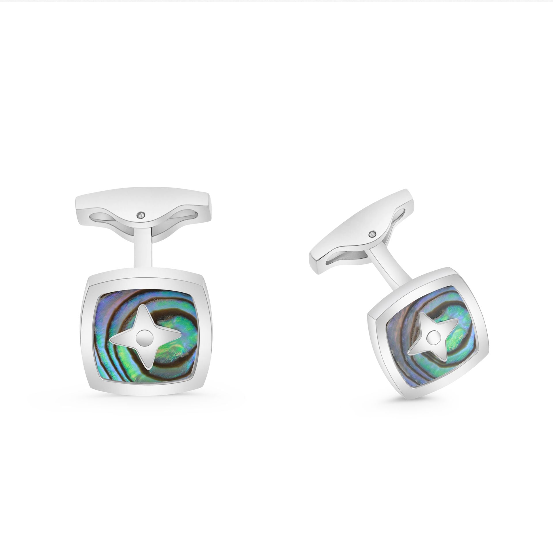 كبك ستانلس ستيل لون فضي و احجار صدف استرالي عيار L316