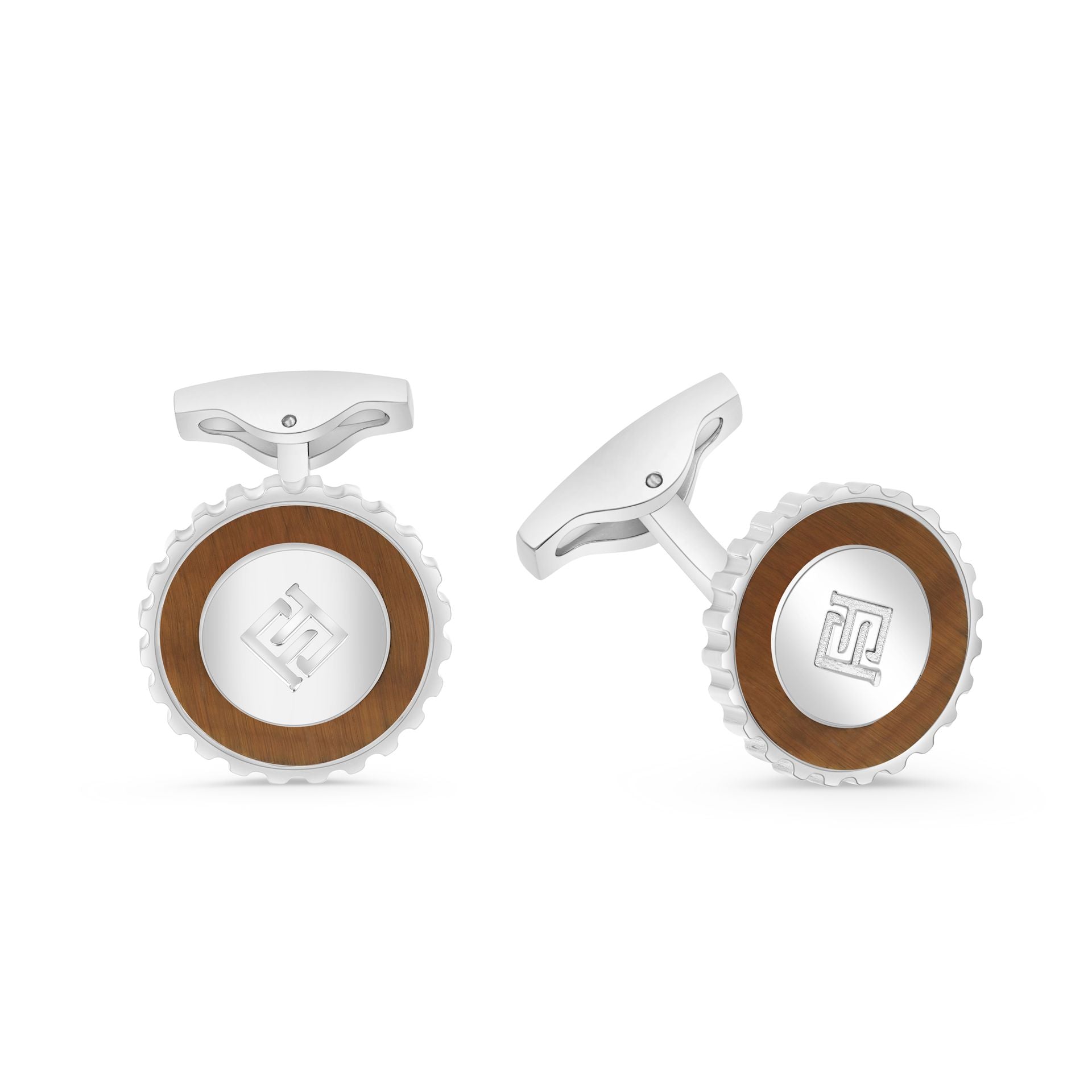 كبك ستانلس ستيل لون فضي و احجار عين النمر اصفر عيار L316