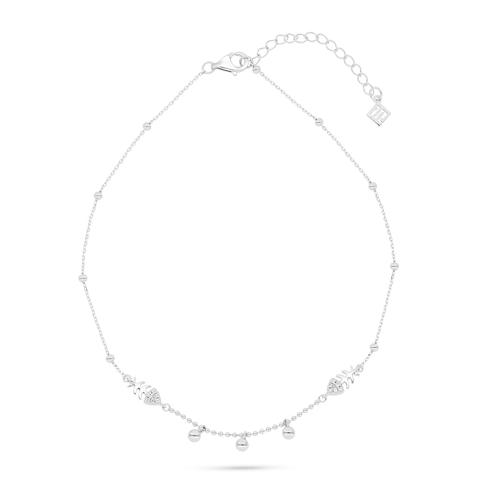 خلخال من الفضة الخالصة عيار 925 مطلي روديوم مرصع فص ابيض