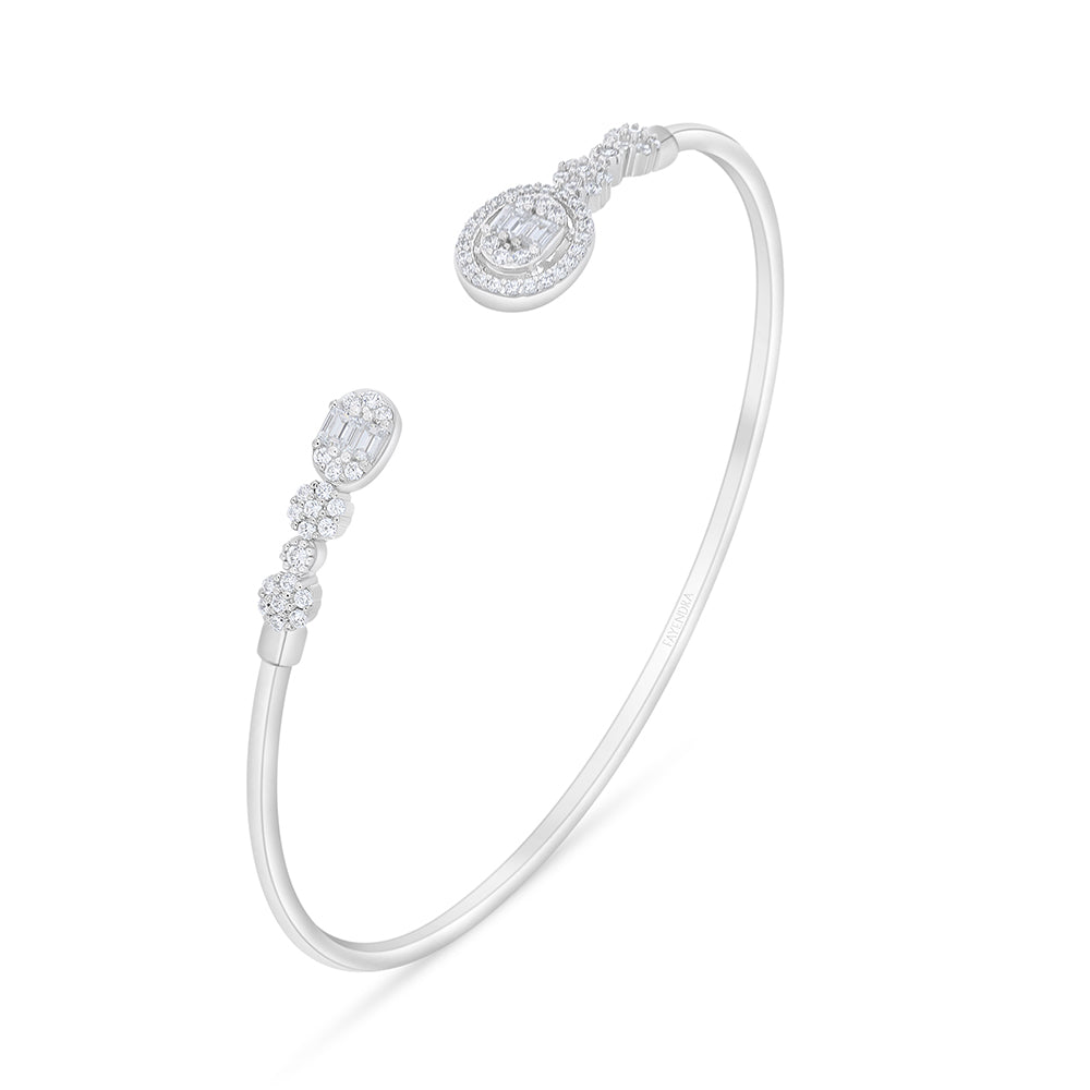 بنجلة من الفضة الخالصة عيار 925 مطلية روديوم مرصعة فص ابيض ( 52*58 )