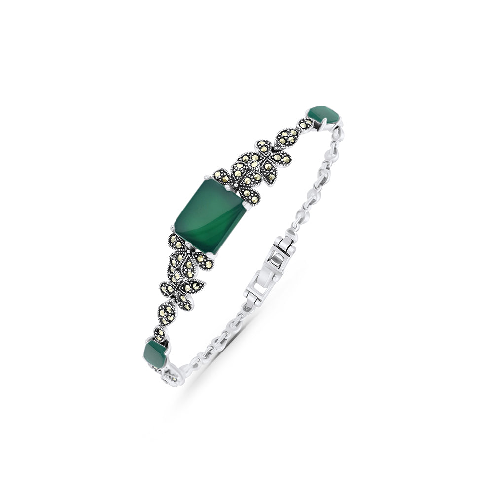 اسورة من الفضة الخالصة عيار 925 مرصعة احجار عقيق جاد اخضر طبيعي وماركسايت