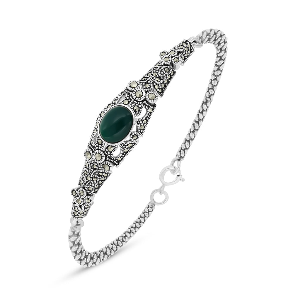 اسورة من الفضة الخالصة عيار 925 مرصعة احجار عقيق جاد اخضر طبيعي وماركسايت