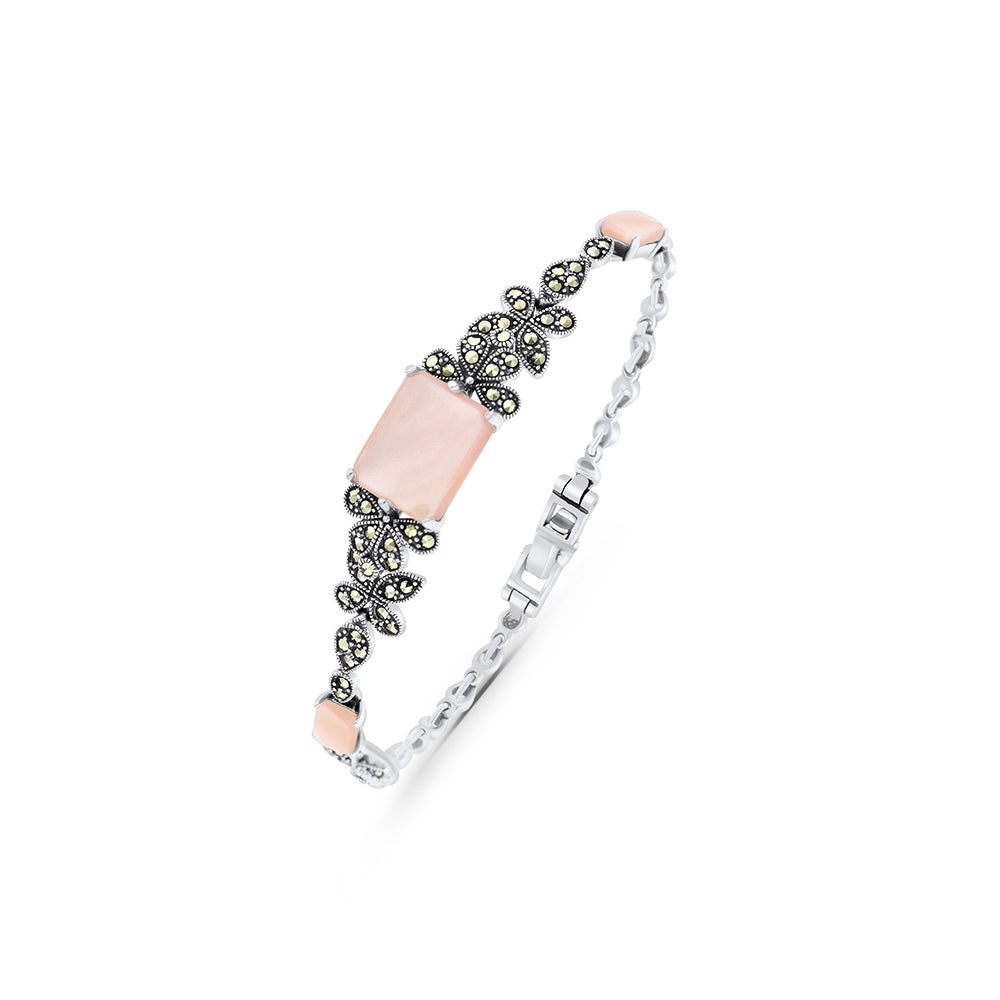 اسورة من الفضة الخالصة عيار 925 مرصعة احجار صدف وردي طبيعي وماركسايت